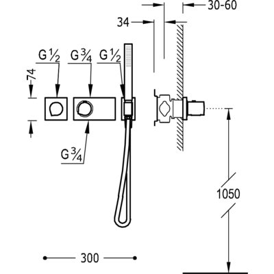 Комплектація: вбудований змішувач з термостатом, ручний душ з антивапняним покриттям, шланг SATIN1,5 м. - хромове покриття, механізм проти скручування