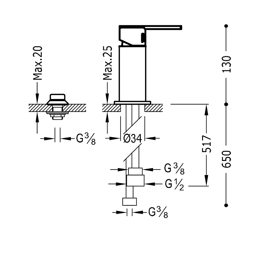 Стандарт підведення:G1/2" / G3/8"