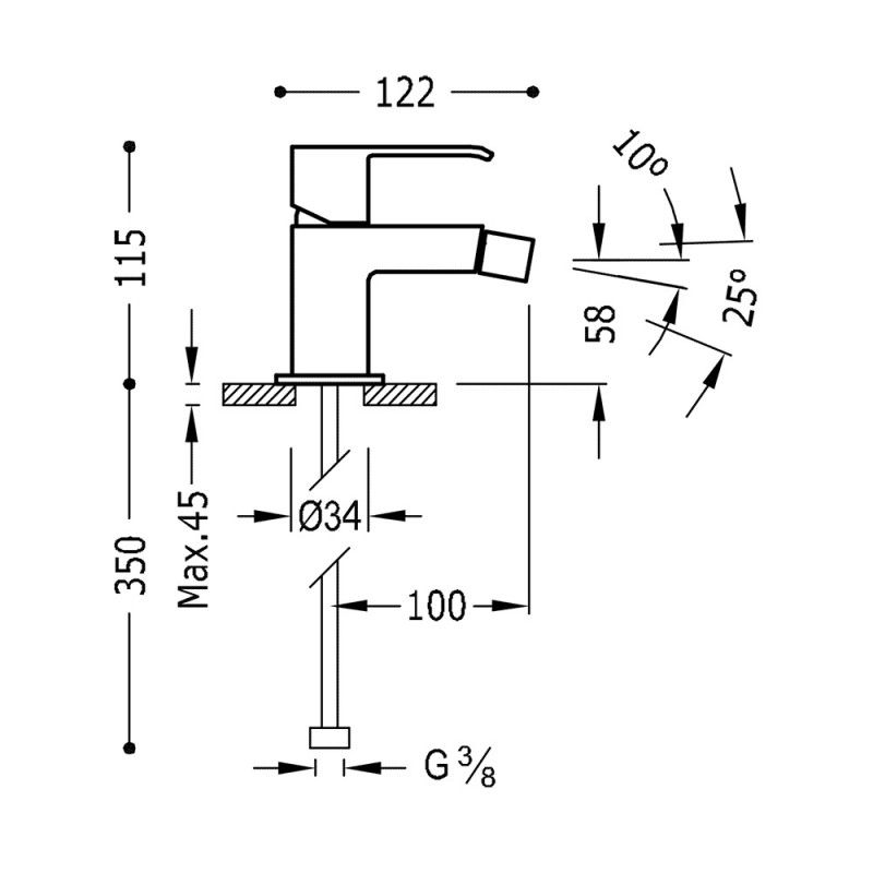 1) Змішувач для біде Tres Cuadro colors одноважільний золото