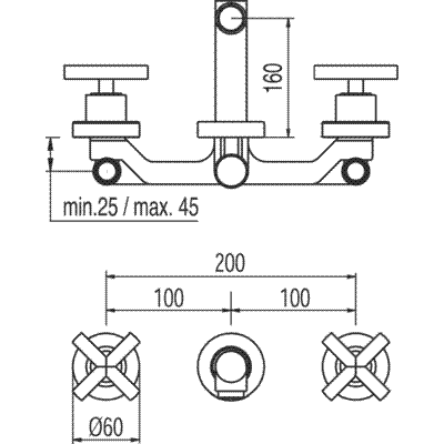 163152 Одноважільний настінний змішувач для раковини Tres Max