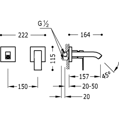 006.200.10 Одноважільний настінний змішувач для раковини Tres Cuadro