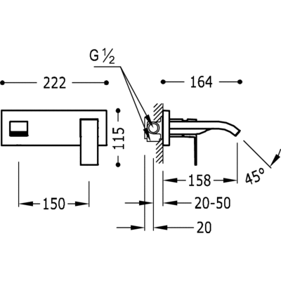 006.260.01 Одноважільний настінний змішувач для раковини Tres Cuadro