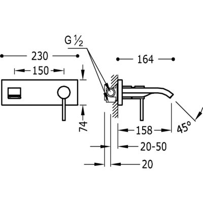 06226010 Одноважільний настінний змішувач для раковини Tres Max