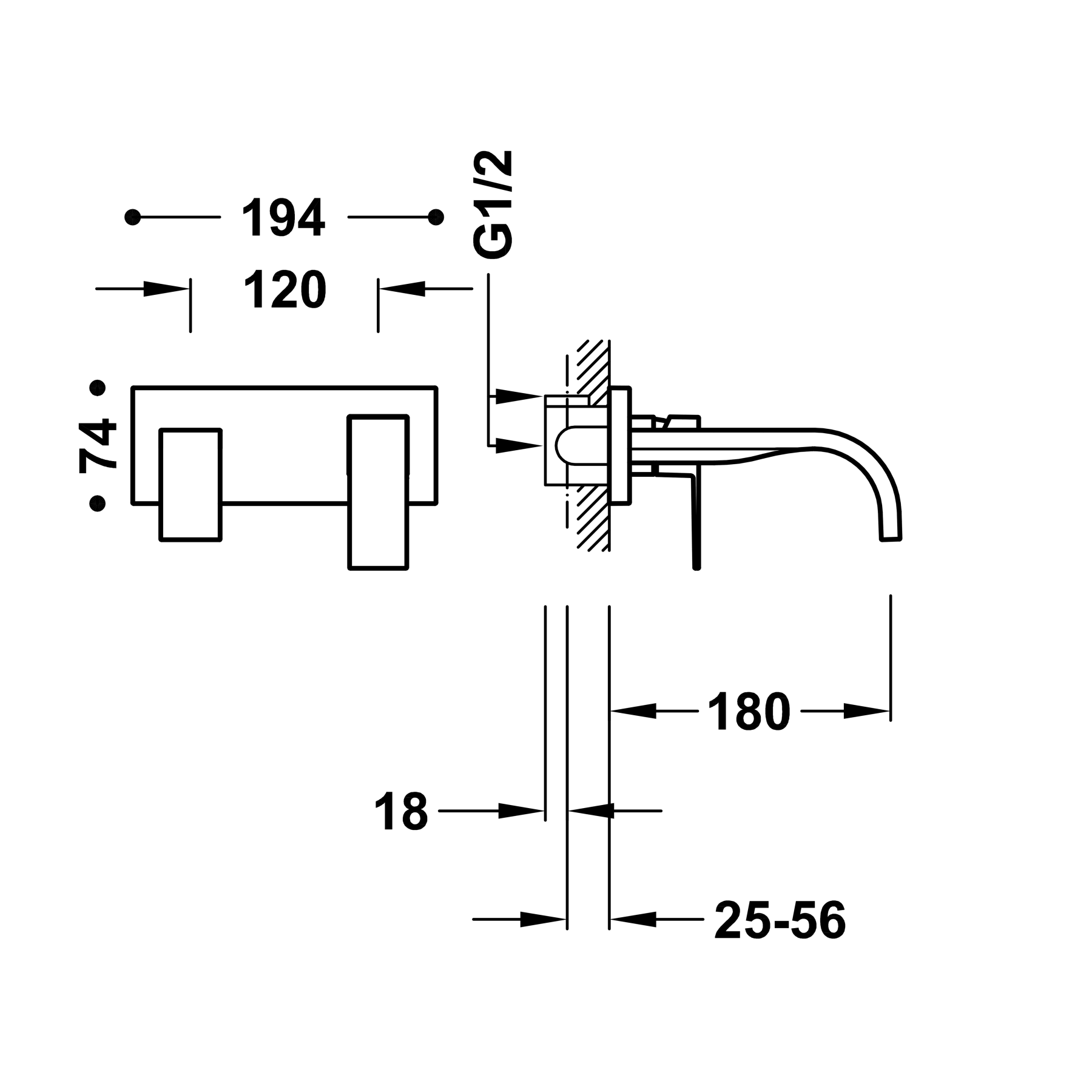 Одноважільний настінний змішувач для умивальника