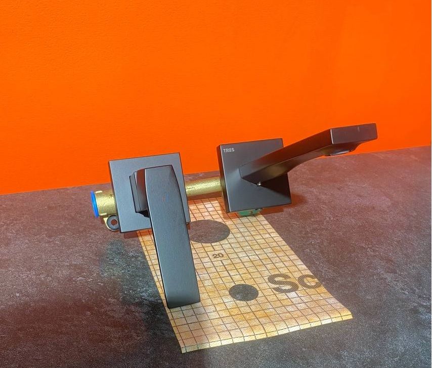 Представляємо вам елегантне рішення для вашої ванної кімнати - вбудований у стіну змішувач для умивальника з серії Slim від фабрики Tres в Іспанії. Цей вишуканий змішувач поєднує в собі функціональність, стиль та надійність, роблячи його ідеальним вибором для сучасних інтер'єрів.