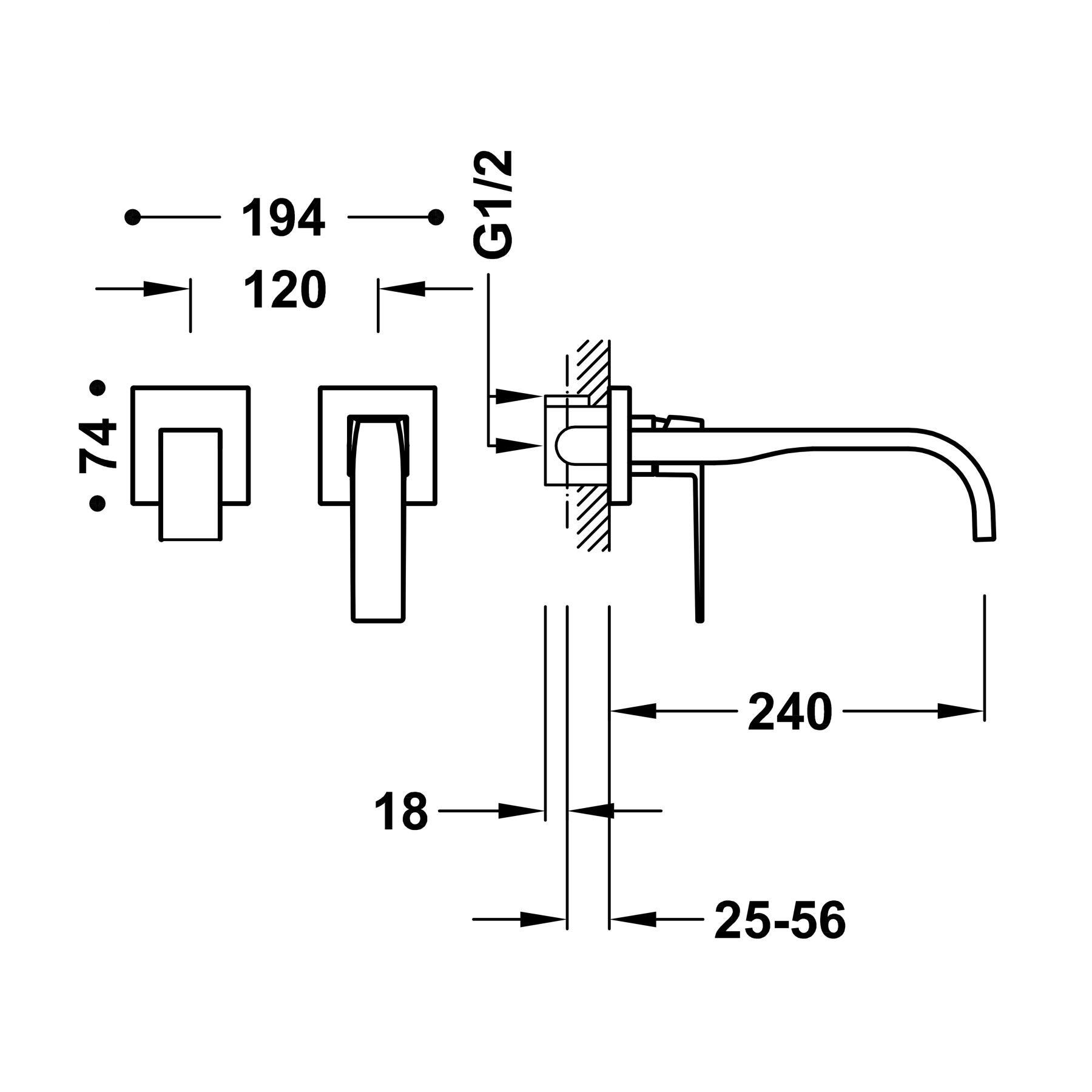 Одноважільний настінний змішувач для умивальника