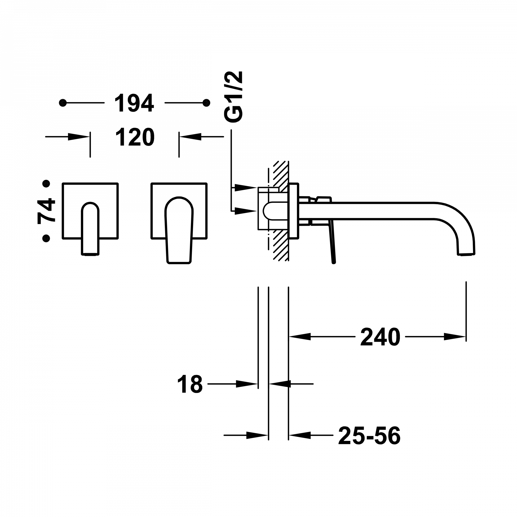 Одноважільний настінний змішувач для умивальника Project-Tres 21130002OP, Tres, Змішувачі для раковини