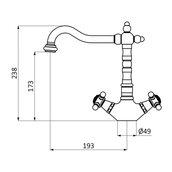 - Висота змішувача: 238 мм