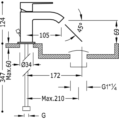 1.06.103.DA Одноважільний змішувач для раковини Tres Cuadro