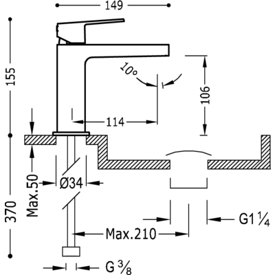 211.103.01.AC.D Одноважільний змішувач для раковини Tres Project