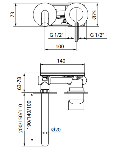 - Глибина у стіні мінімальна 63 мм, максимальна 73 мм