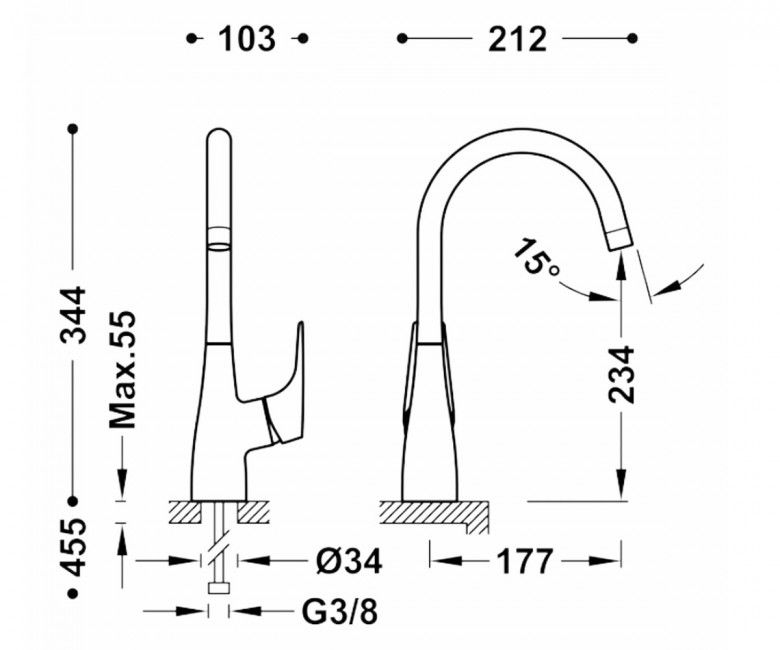- висота змішувача 344 мм
