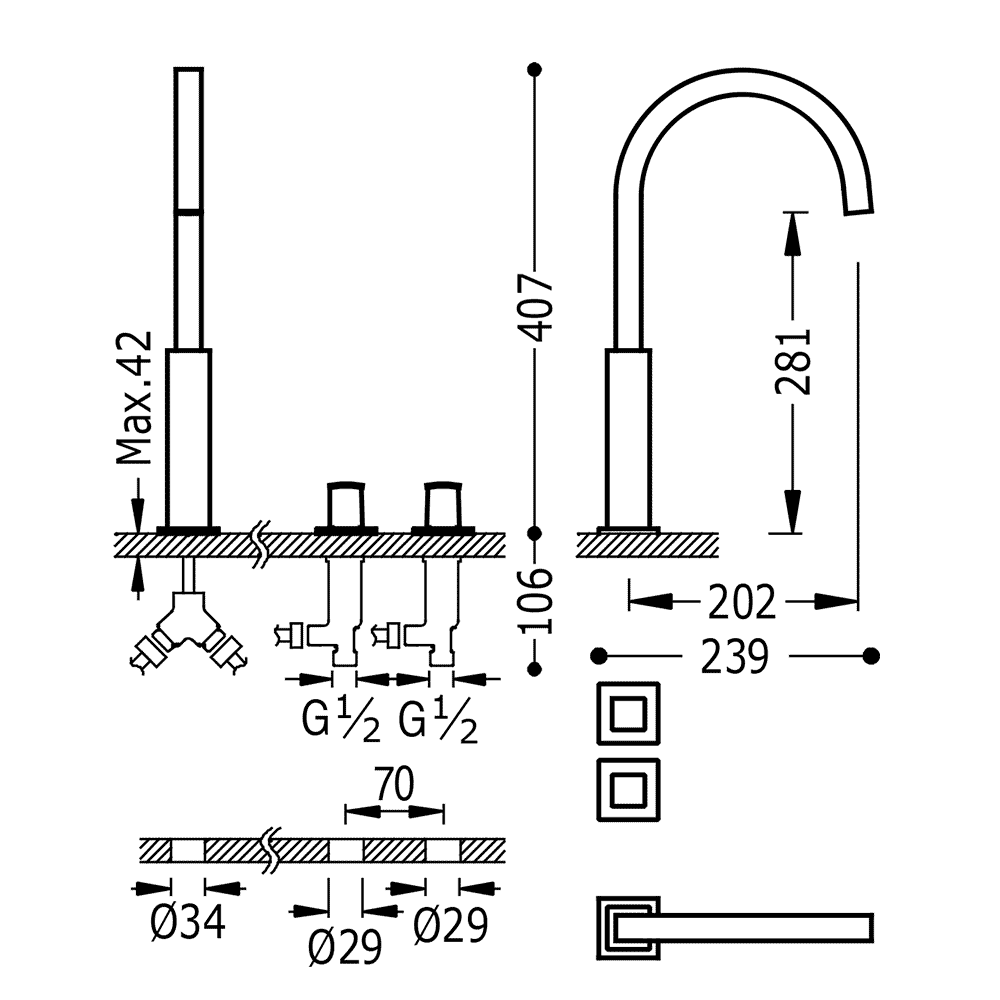 Дворучний змішувач на борт ванни Tres Cuadro Exclusive 00810504NM, Tres, Змішувачі на борт ванни