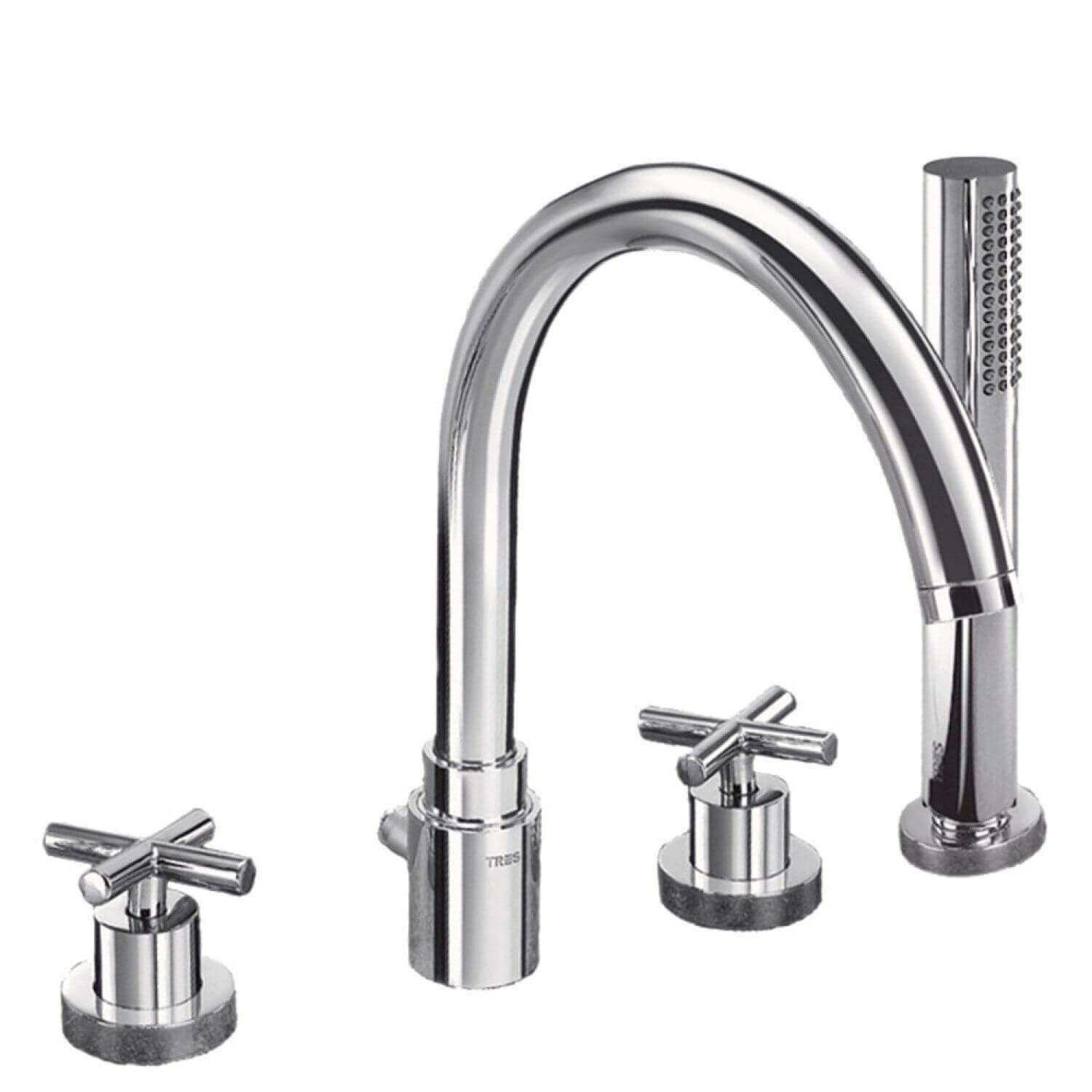 Змішувач для борту ванни, Знімний душ з антивапняним покриттям 163145, Tres, Змішувачі на борт ванни