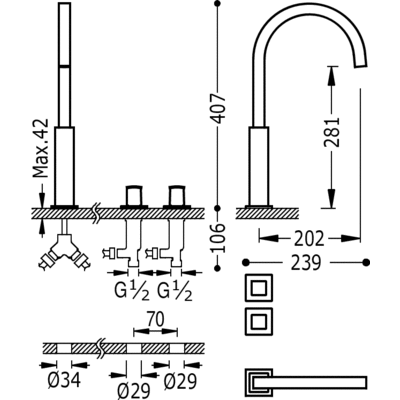 Купити Дворучний змішувач на борт ванни Tres Cuadro Exclusive 00810504 за 12296.55 грн