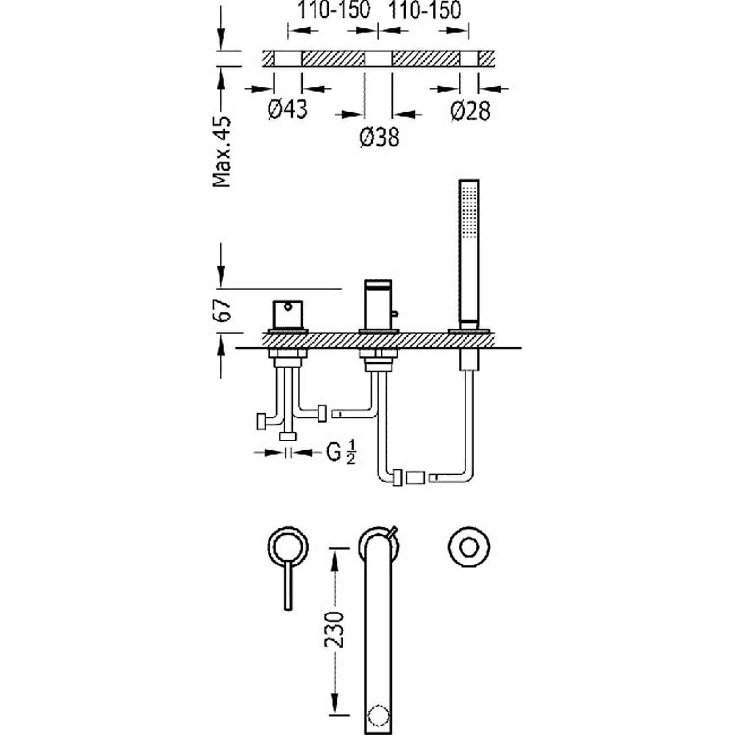 - Одноважільний змішувач для ванни на 3 отвори