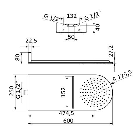 Верхній душ:600x250 мм