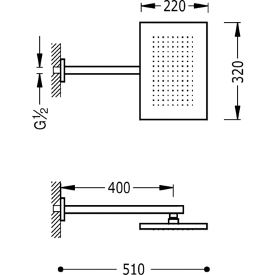 Верхній душ:320х220 мм