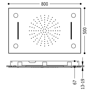 Верхній душ:800х500 мм