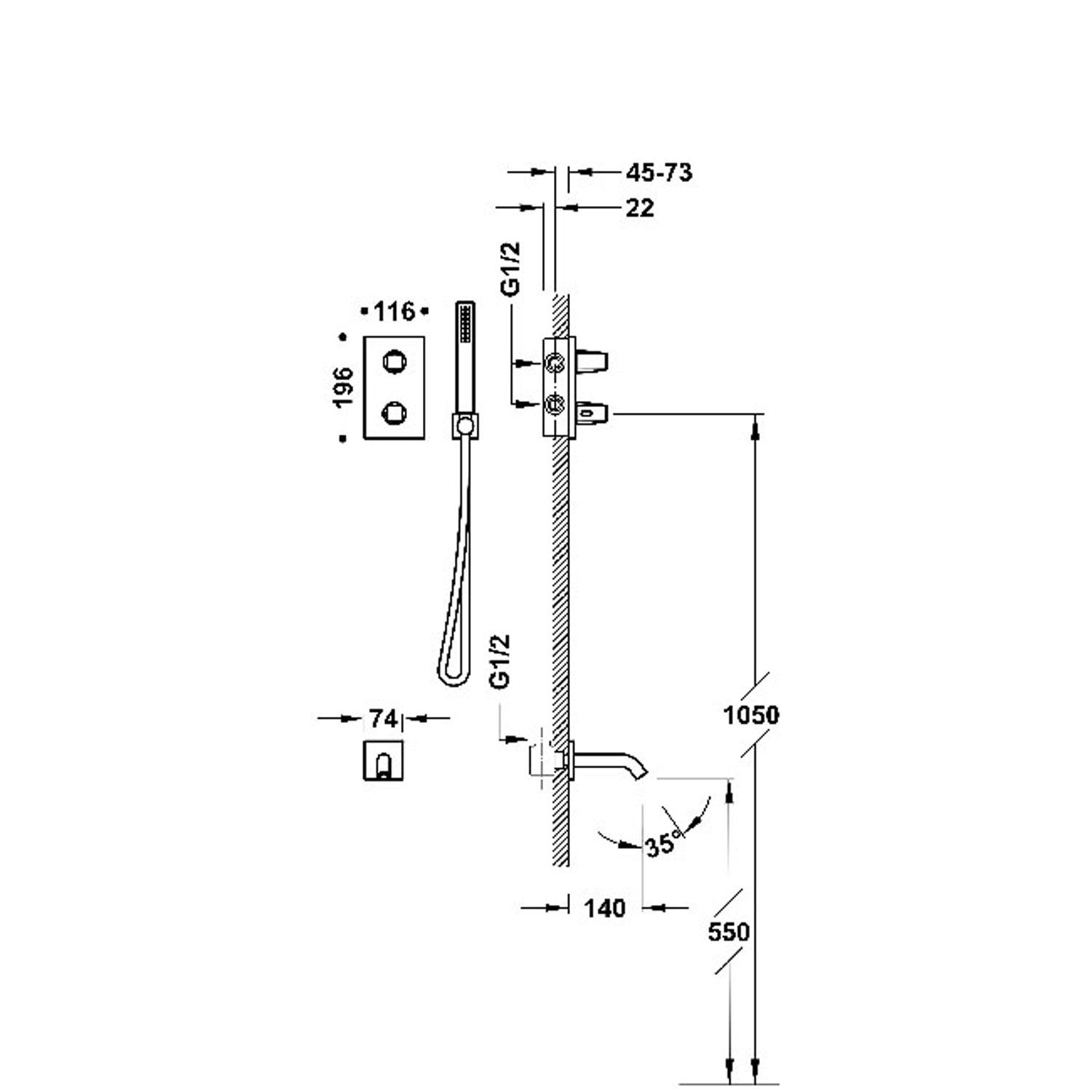 Комплектація:Вбудований змішувач з тримачем та ручним душем