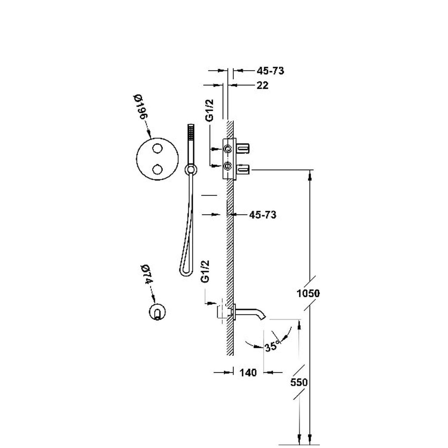 Комплектація:Вбудований змішувач з тримачем та ручним душем