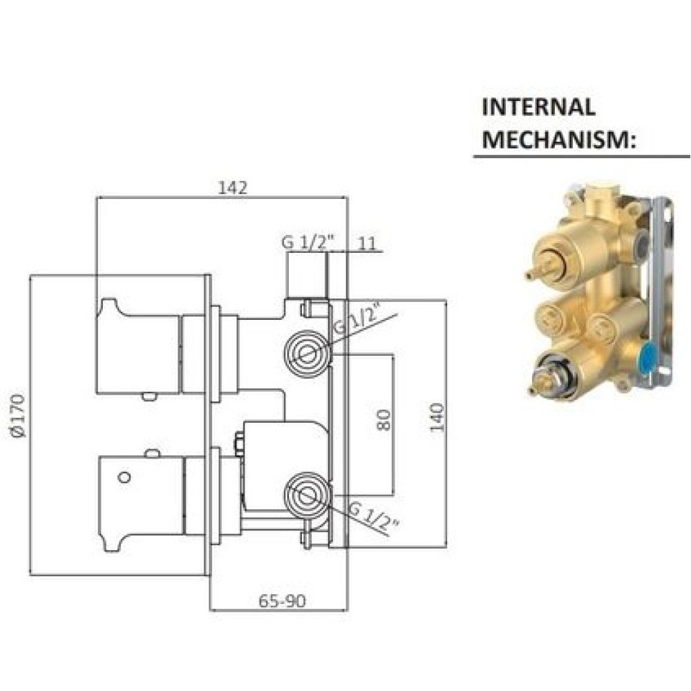 - Глибина у стіні мінімальна 65 мм, максимальна 90 мм