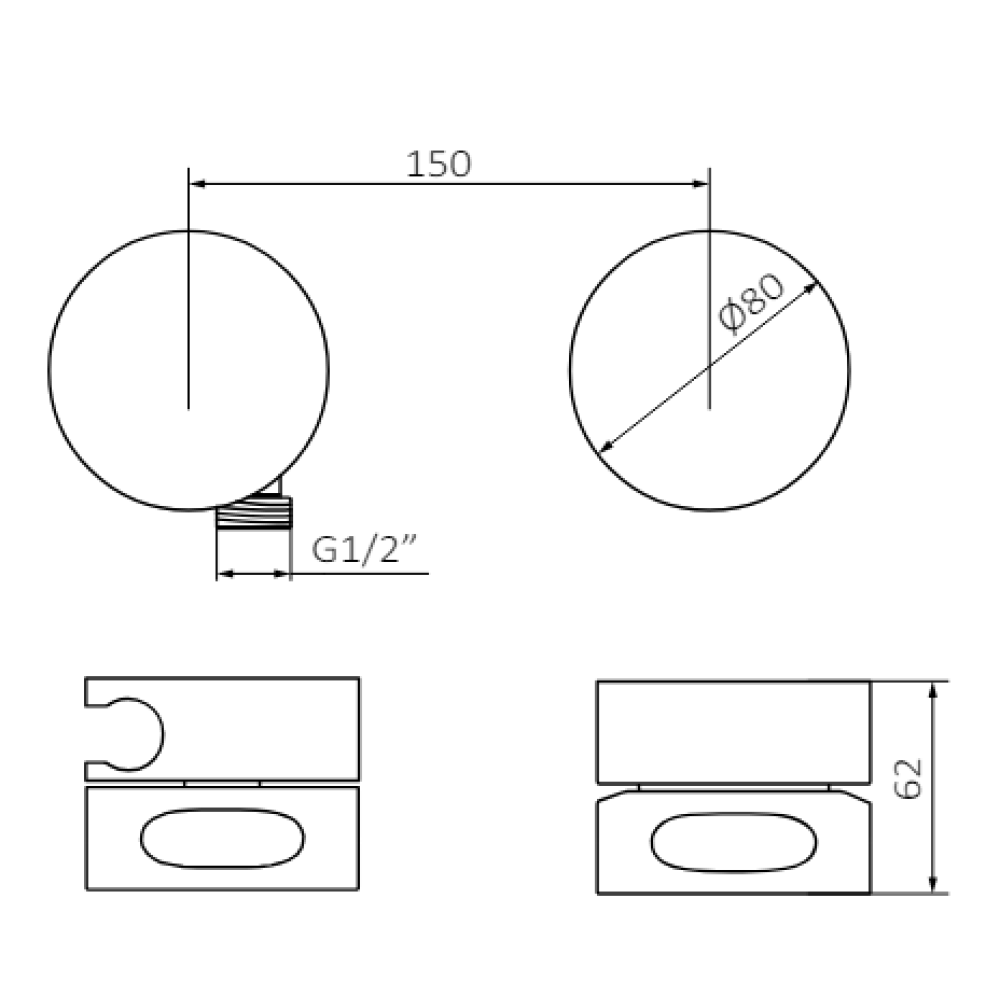 - Ручка: Ø80 мм. Включає опору із випускним отвором